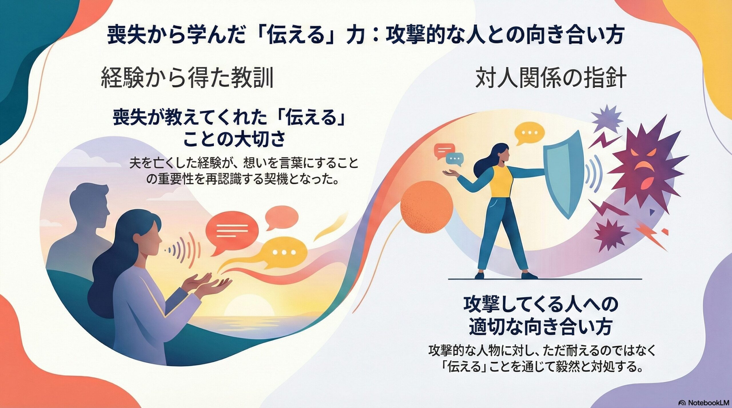 この記事では、死別を経験した私が気づいた「伝えること」の大切さと、攻撃的な人とどう向き合うかについてお話しします。