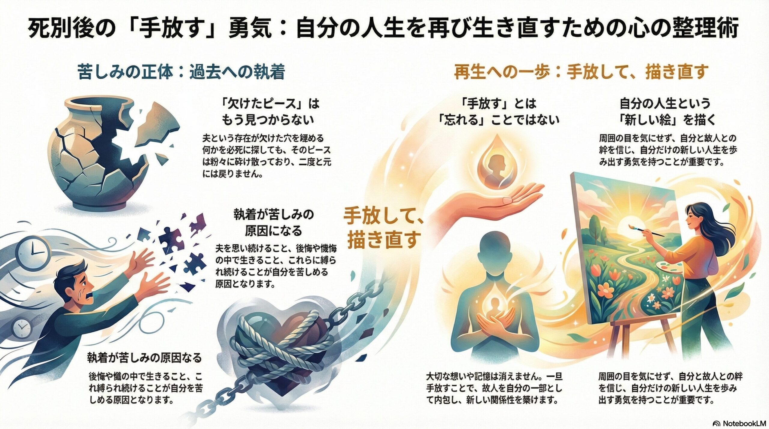 だけれど、一番手放せなければいけないことは、夫をある意味思い続けるということです。