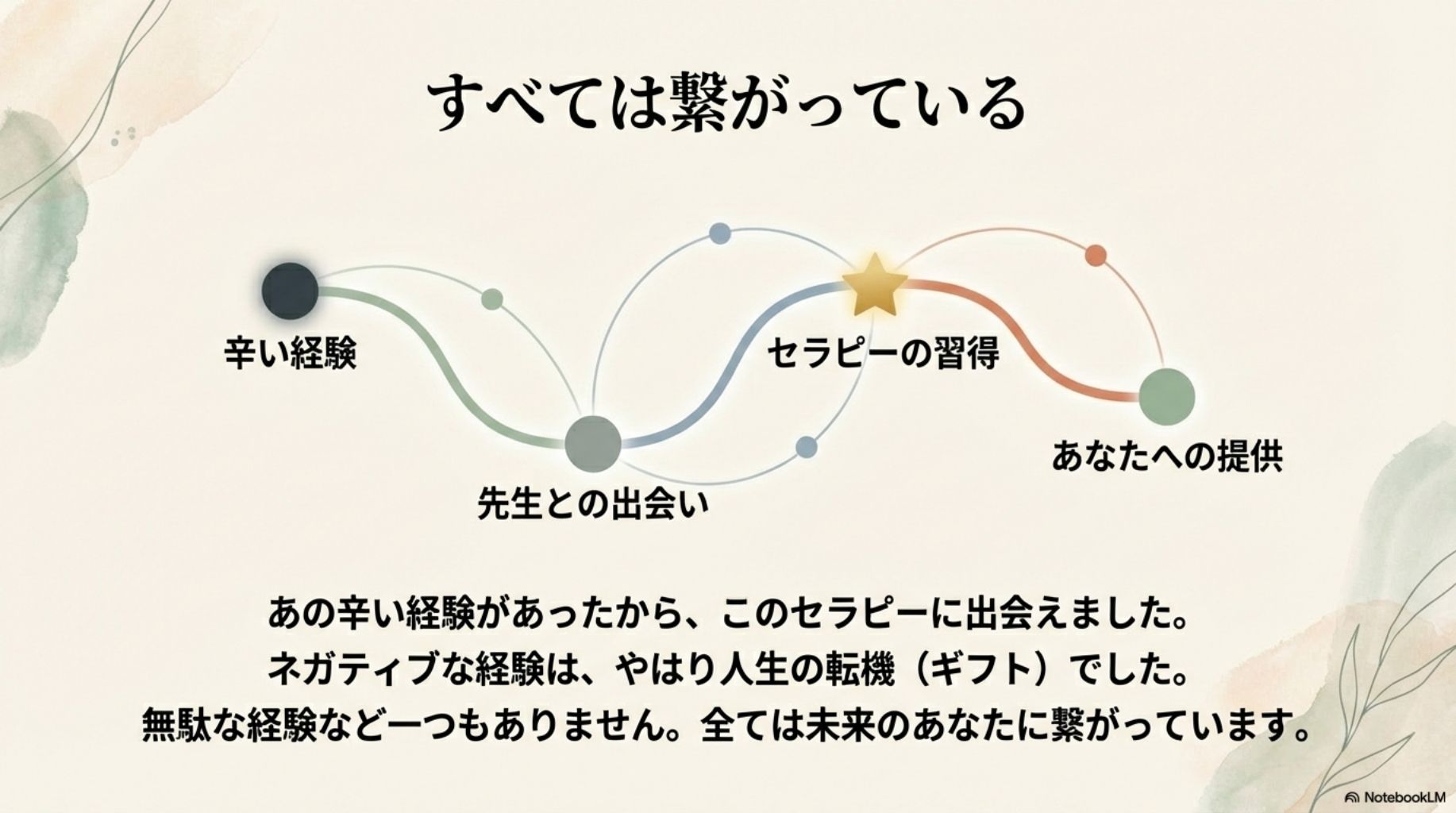 - 辛い経験も、後から意味が見えてくる