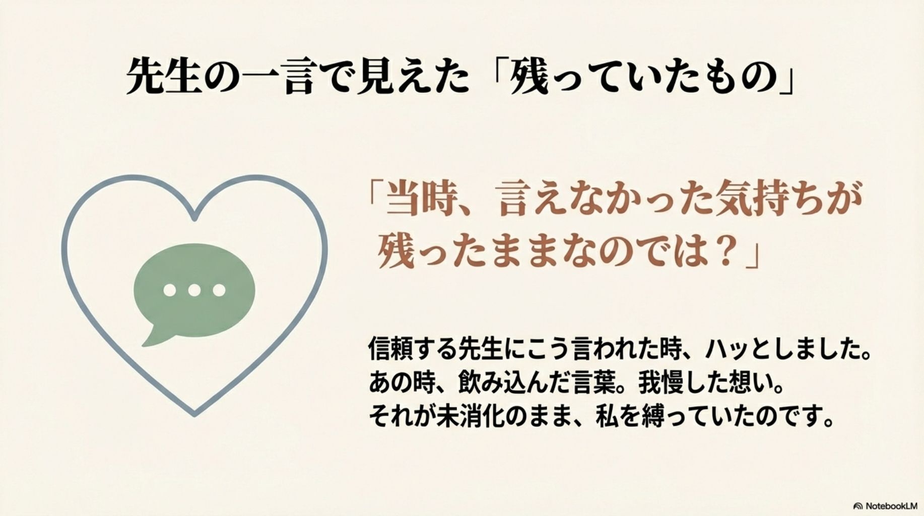 - 言えなかった気持ちが、心に残り続ける
