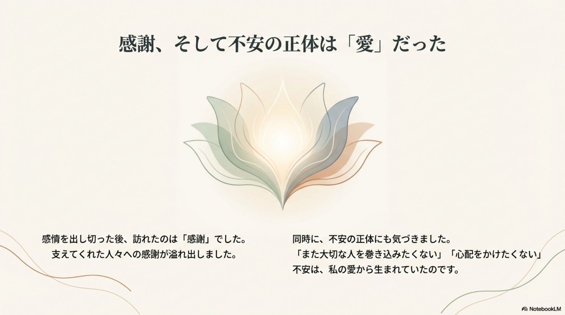 その人たちに感謝があふれるからこそ、また同じように巻き込みたくないという気持ちも働き、不安になっていたことに気づけたのです。